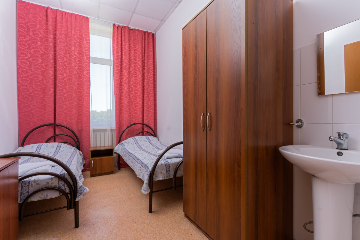 2-местн. 2-комн. Стандарт (корп.4) (удобства на блок) — 26 кв. м, двуспальная кровать/ раздельные кровати, вид на территорию, доп. место — диван-кровать