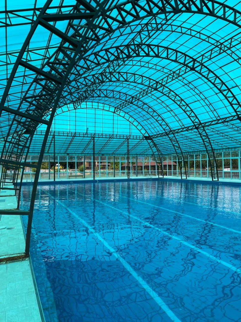 крытый комплекс: большой бассейн для взрослых с морской водой и подогревом в прохладное время
